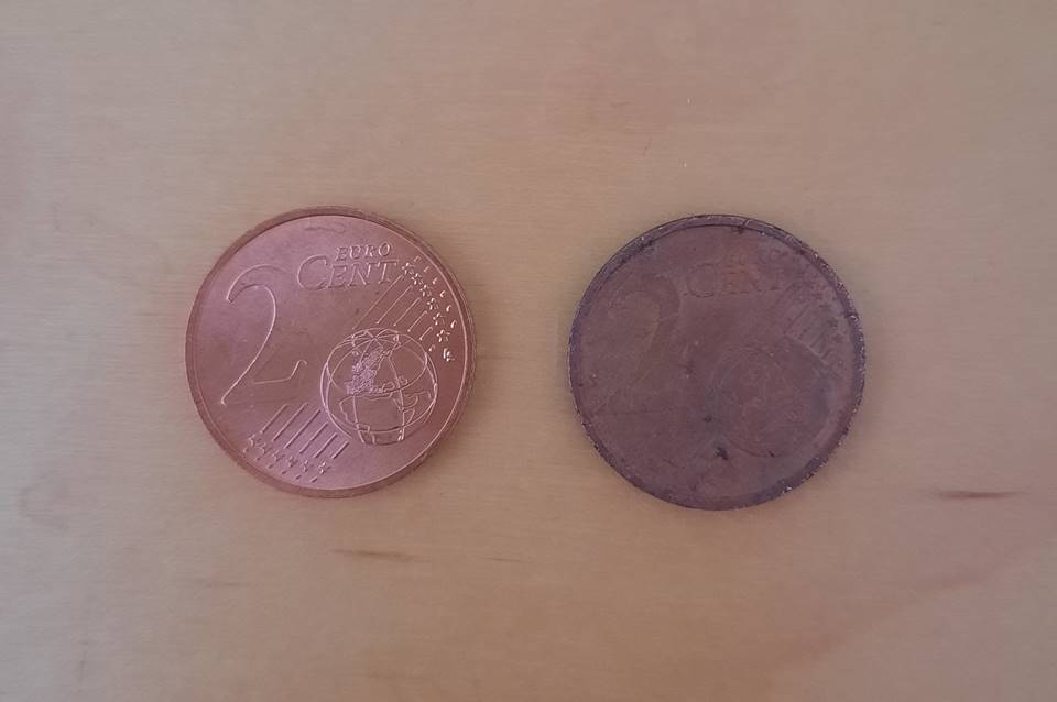 Die Oxidschicht von Münzen kann z. B. durch Essigsäure abgelöst werden.