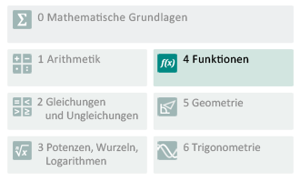 In zweiten Lernmodul werden unterschiedliche Funktionenklassen genauer untersucht. Konstante, lineare und quadratische Funktionen zählen zu den Polynomfunktionen. Rationale Funktionen erhält man durch die Division zweier Polynomfunktionen. Außerdem werden Wurzelfunktionen betrachtet.