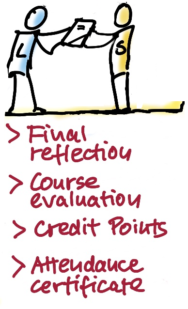 Furthermore, an evaluation with the community partner, as well as a self-evaluation of the lecturer(s) is highly recommended.