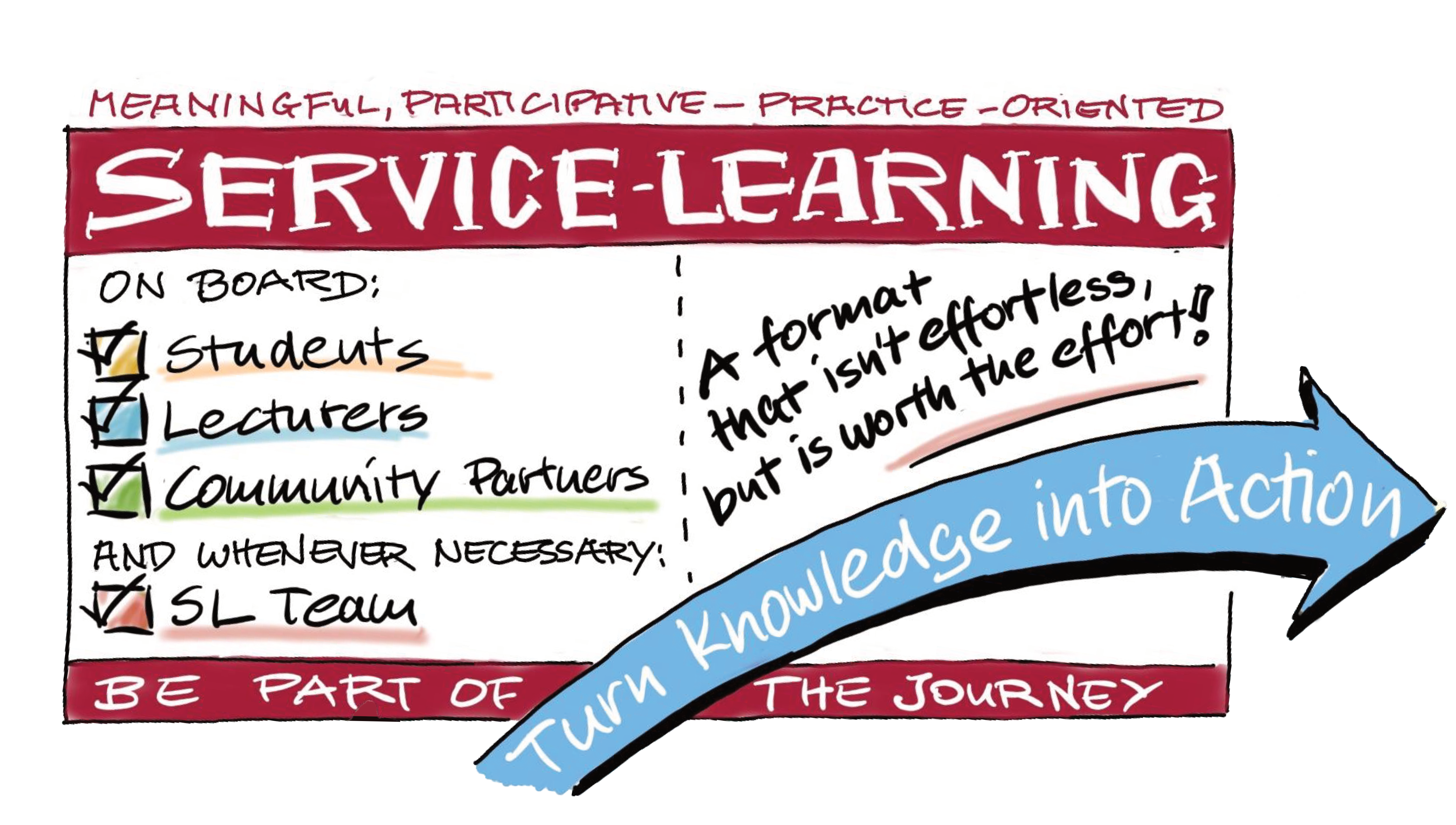 But how do you organize a Service-Learning course? This part serves as guide on how to conceptualize, implement and assess a Service-Learning course. Our road map guides you through the different steps for planning and implementing a S-L idea, while our info boxes provide tips and issues to consider.