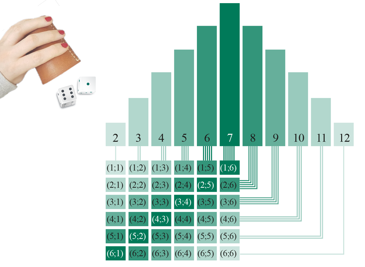 Um den Zufall, der das Eintreten eines Ereignisses bestimmt, "berechenbar" zu machen, wird ihm eine Größe zugewiesen. Um diese Zufallsvariable, also das Maß der Wahrscheinlichkeit \(p\), wird es in diesem Lernmodul gehen. Außerdem betrachten wir zentrale Maße der Statistik, wie Erwartungswert \(\mu\), Varianz \(\sigma^2\) und Standardabweichung \(\sigma\).