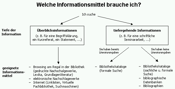 Je nach Art der Studienleistung und "Tiefe" des Informationsbedürfnisses ergibt sich die Anwendung verschiedener Informationsmittel.