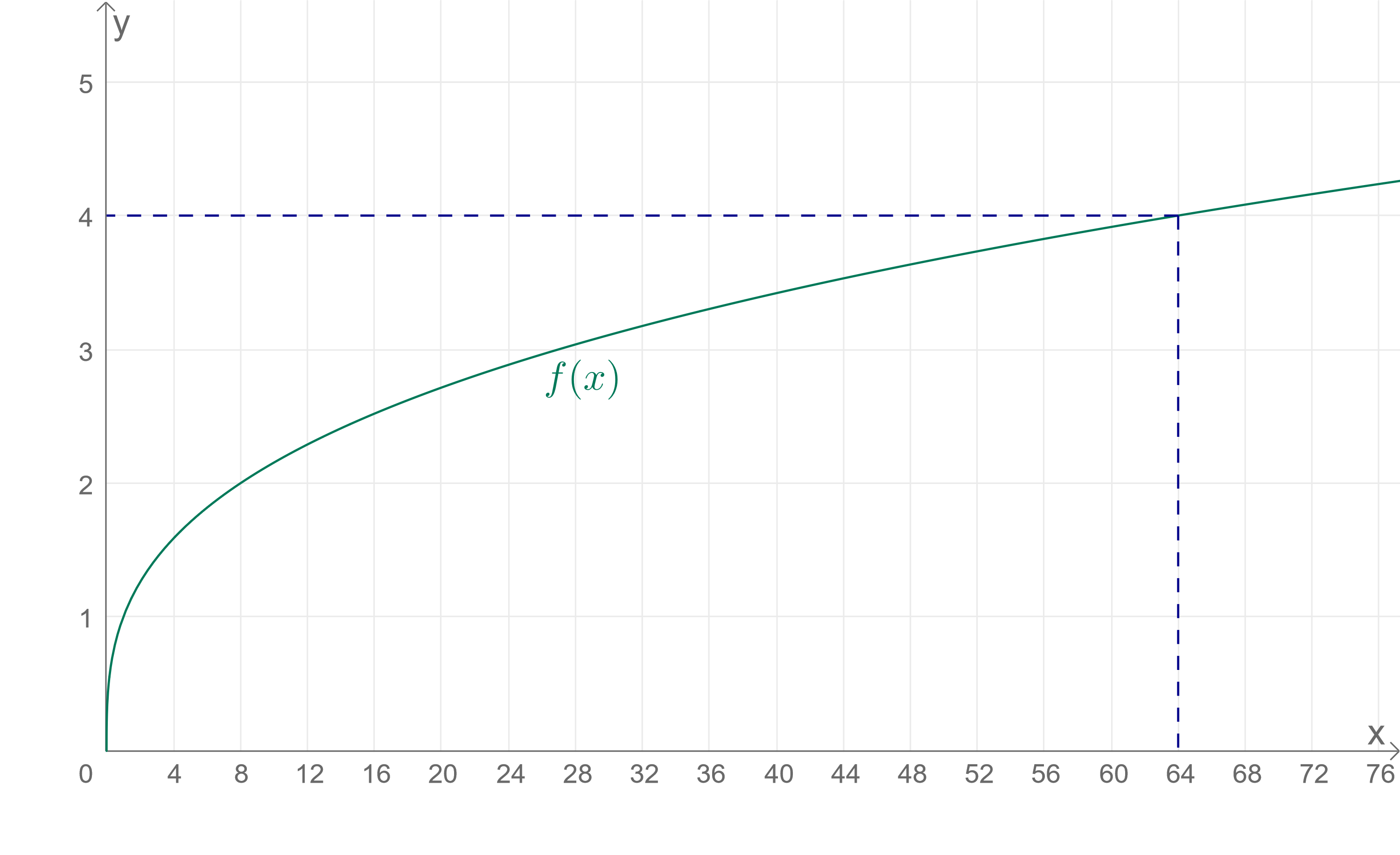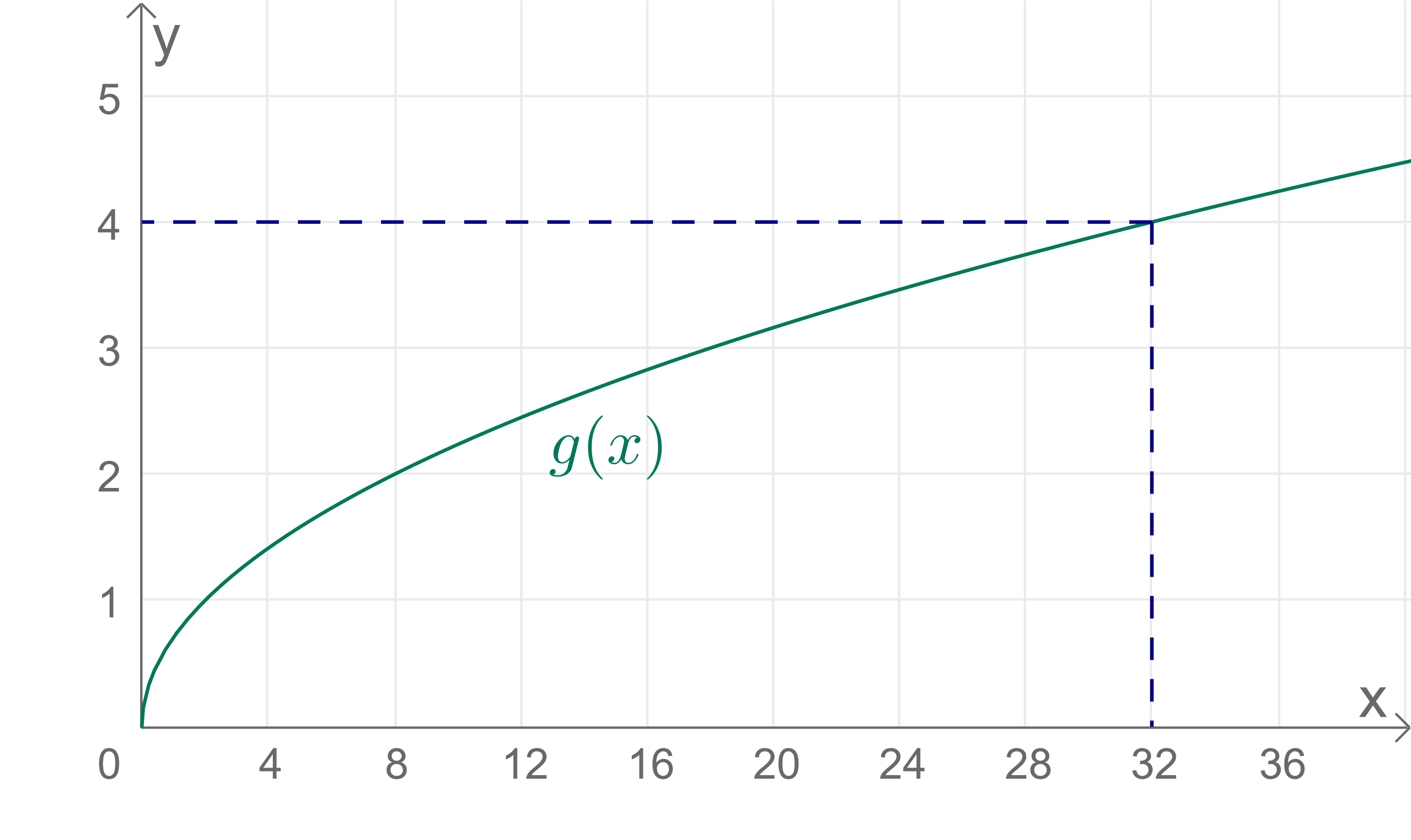 \(\qquad g(32) = \sqrt{\dfrac{32}{2}} = \sqrt{16} = 4\)